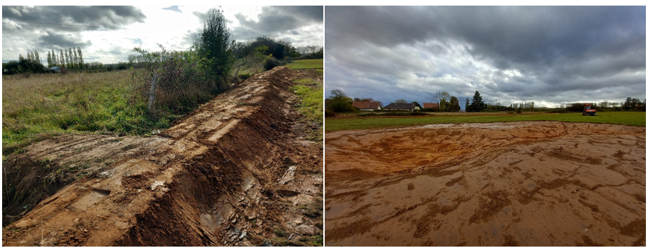 Début octobre, des travaux dans une prairie de fauche ont eu lieu à Saint-Léger-en-Bray afin de limiter les phénomènes de ruissellement dans la commune et de restaurer une zone humide.